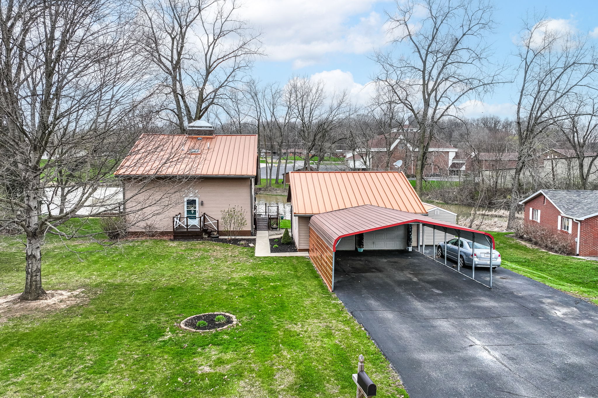Welcome to this well-maintained 3-BR, 2-BA home situated on spacious 0.48-acre lot w/ scenic pond frontage. Main level features bright & open Living Rm w/ vaulted ceilings & cozy wood-burning FP, along w/ eat-in Kitchen complete w/ SS appliances, breakfast bar, & pantry. Primary Suite is conveniently located on main level & offers a private full bath w/ walk-in shower. Upstairs, you'll find 2 additional BRs & full bath, providing great separation of space. Finished walk-out basement adds incredible versatility with a large Rec/Play Room, Bonus Rm w/ kitchenette-ideal for entertaining, guests, or multi-generational living-& dedicated Laundry Rm. Step outside to enjoy the wraparound deck overlooking the backyard & peaceful pond, complete w/ private pier-perfect for relaxing or enjoying the view. Additional highlights include central vacuum system, new A/C (2022), newer furnace (2019), 2-car detached garage, carport, & storage shed. Move in and make it home!